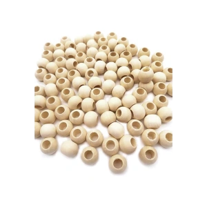 100 Gr (100 Adet) Ahşap Boncuk 15 mm çap x 10 mm Delik Doğal Yuvarlak Ahşap Makrome El İşi Çanta