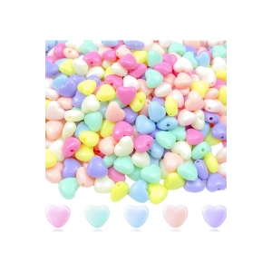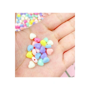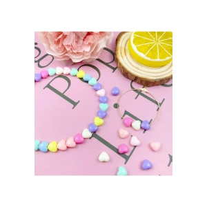 100 gr (500 adet) Şeker Rengi Akrilik Kalp Boncuklar Renkli Karışık Plastik Pastel Boncuklar Ara Boncuk Kalp Şekilli Kolye Bilezik için